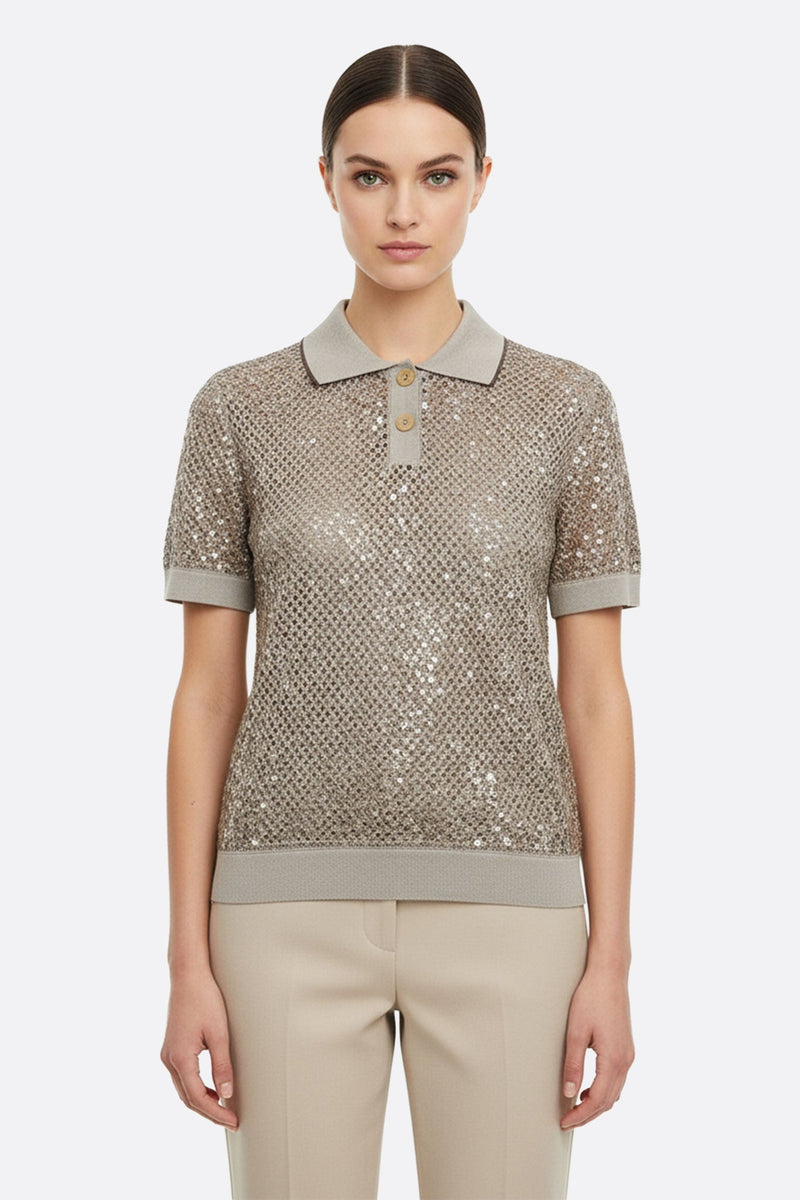 Made in ItalyMade in ItalyPolo manches courtes beige sablé en maille ajourée à sequins ton sur tonPrix habituel €145,00 EURPrix habituelPrix unitaire / parPrix promotionnel €145,00 EUR -