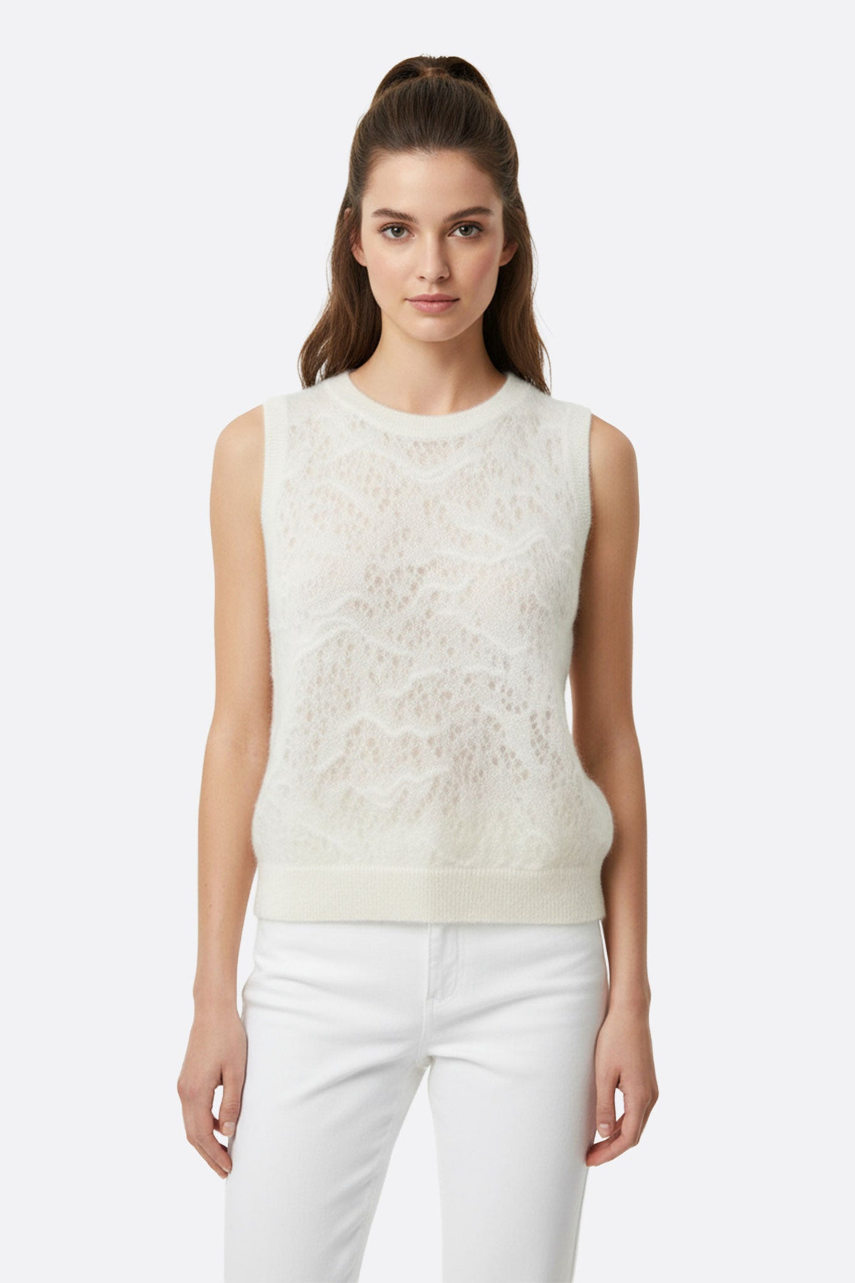 Este chaleco sin mangas de lana y mohair blanco Misciano es una pieza imprescindible para un guardarropa refinado. Ilustra la elegancia natural y la modernidad discreta que tanto aprecia Misciano, ofreciendo comodidad y sofisticación en el día a día.
