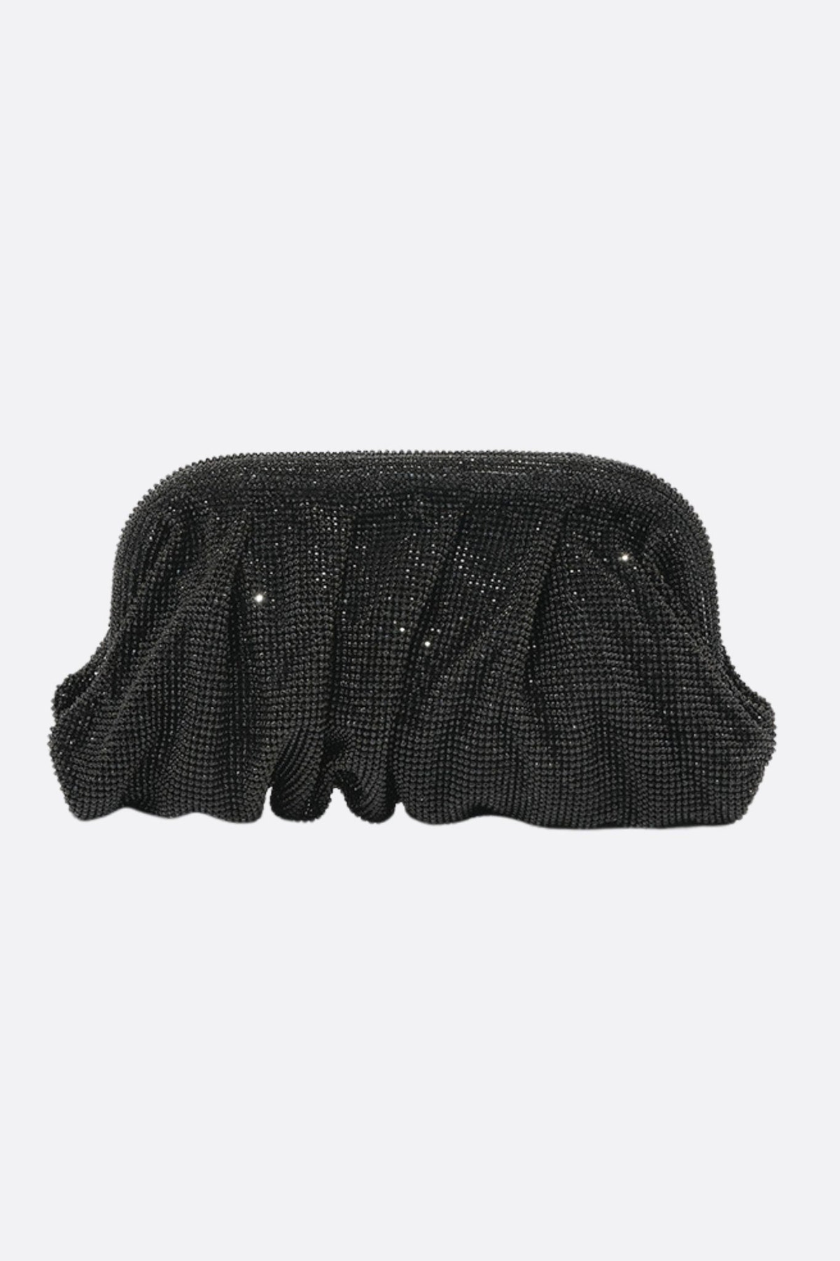 Minimalista e preziosa, questa pochette nera in strass seduce per il suo scintillio discreto e la sua silhouette plissettata. Un accessorio di carattere, concepito come un pezzo gioiello che sublima i vostri abiti da sera con sottigliezza.