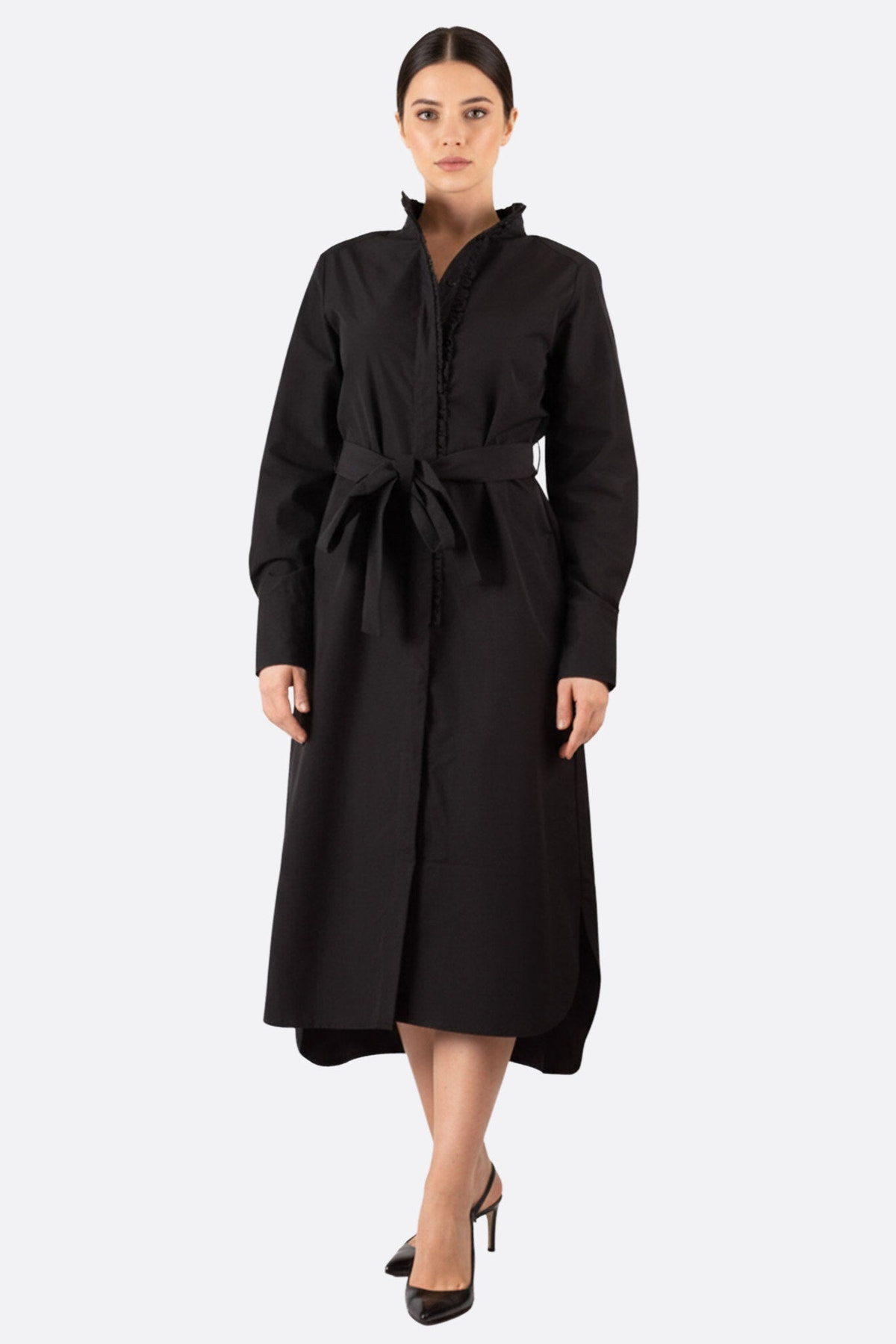 Pièce polyvalente par excellence, cette robe noire chemise longue se porte avec des escarpins pour une allure sophistiquée ou avec des bottines pour un style plus décontracté. Elle reflète le savoir-faire Misciano, où chaque détail est pensé pour offrir une tenue à la fois distinguée et confortable.