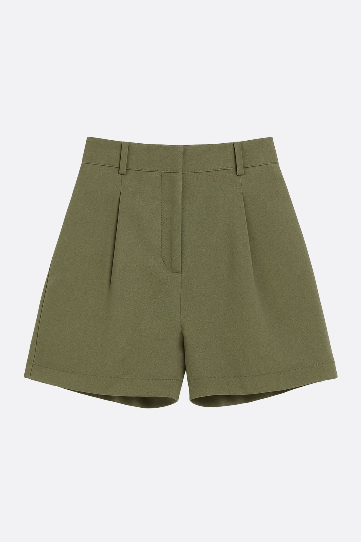 Этот женский шорты с высокой талией привлекает своим безупречным кроем и естественно утонченным видом. Сшитый из структурированной хлопковой ткани, он обеспечивает идеальную поддержку, обеспечивая при этом оптимальный комфорт. Его оттенок хаки, тонко нюансированный, делает его универсальным предметом, легко сочетающимся с майкой из джерси или легкой рубашкой.